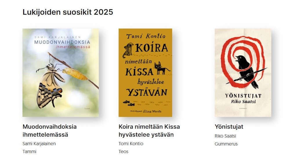 Lukijoiden suosikit vuonna 2025 ovat