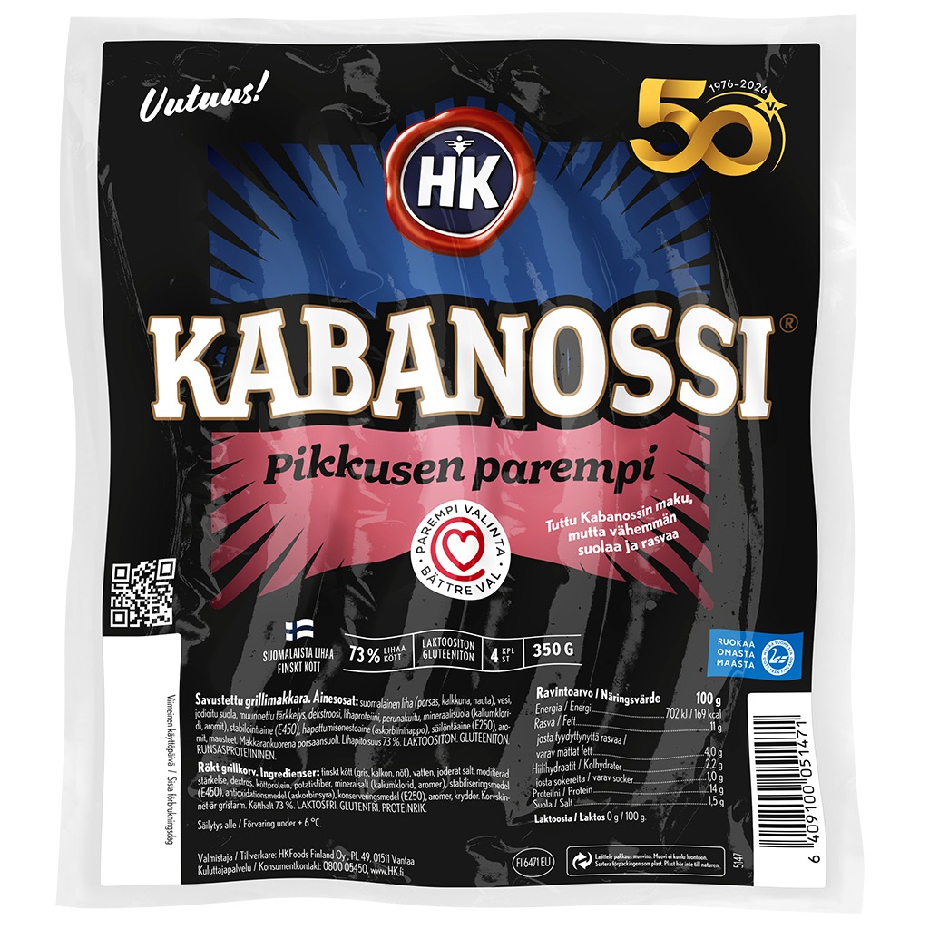 Juhlavuoden kunniaksi HK Kabanossi -tuoteperheeseen tulee Suomen ensimmäinen grillimakkara, joka on saanut Sydänmerkin. HK Kabanossi Pikkusen parempi -grillimakkara tarjoaa vaihtoehdon niille, jotka haluavat nauttia tutusta mausta hieman kevyemmin. Makkarassa on tuttu Kabanossin maku, mutta vähemmän suolaa ja rasvaa. Suolan vähentämiseksi makkarassa on käytetty HKFoodsin innovaatiota, Makusuolaa, jonka ansiosta maun suhteen ei ole tarvinnut tehdä kompromisseja.