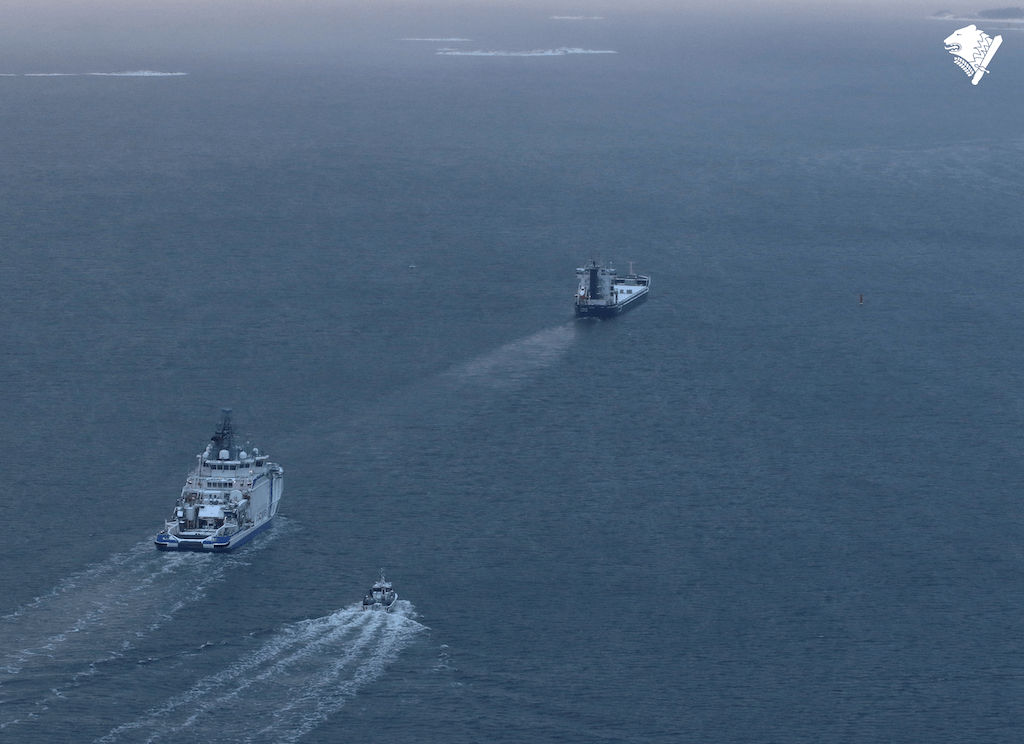 VL Turva ja RV saattavat Fitburg- alusta 12012026. Kuva: Rajavartiolaitos.